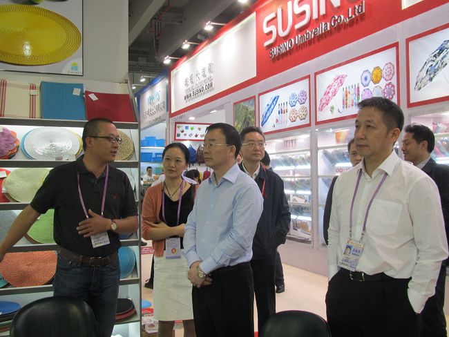 ?曹勇廳長在薛穎董事長的陪同下視察了公司各參展展位,與參展人員親切交談,詳細(xì)詢問企業(yè)參展、產(chǎn)品創(chuàng)新、貨源產(chǎn)地、訂單簽約、價格變化、市場分布以及洽談成交等情況,并就廣交會參展成交工作提出明確要求。